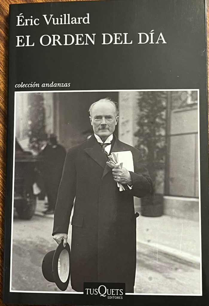 Continué mis lecturas con El orden del día, una novela breve de Eric Vuillard. Era mi primer contacto con el autor y me pareció muy interesante; además se lee en unas pocas horas. Se trataba de una recomendación del grupo de lectores del que ya he hablado por aquí algunas veces.