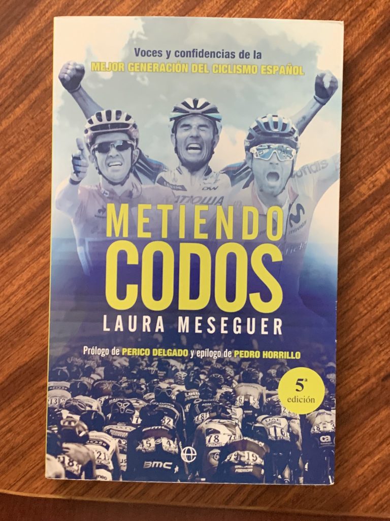 He comentado muchas veces aquí mi afición por el ciclismo. Quienes me conocen bien, lo saben, así que no es raro recibir regalos relacionados con ese tema o incluso que me apoyen para ir a ver el Tour de Francia el día en que una etapa sale de mi pueblo. Eso pasa pocas veces; pensaba que este año era la primera, pero vi que ya había ocurrido en 1973 . Por cierto, no sé por dónde andaría yo en julio del 73 que no recuerdo haber estado allí. Todo esto viene a cuento de otra de mis lecturas, la que fui leyendo poco a poco en meses anteriores y que acabé en junio: Metiendo codos, de Laura Meseguer. Veo que Laura Messeguer es una periodista habitual en el mundo del ciclismo en prensa de papel y ahora también en las retransmisiones televisivas. Reconozco que no la recordaba. El libro es un recorrido por los años más brillantes del ciclismo español, los de Óscar Freire,Alejandro Valverde, Alberto Contador, Purito Rodríguez y tantos otros. Los años en los que el ciclismo español, sin olvidarse de las grandes carreras por etapas, su fortaleza tradicional, apuesta también por las grandes clásicas de un día, lo que trajo consigo un buen número de campeonatos del mundo (los tres de Freire, el de Valverde, el de Astarloa,…) y triunfos en las clásicas de primavera, tanto en el norte, con las numerosas Flecha Wallona, como en la Milán-San Remo.