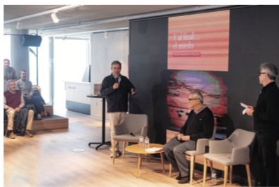 Y en ese momento, sobre todo, un gran agradecimiento a Jaime López-Francos, compañero y amigo desde hace muchos años, que no sólo proporcionó un espacio magnífico para el acto, sino que se volcó en todo momento poniendo a gran parte de su equipo a mi disposición. Sus palabras de introducción, recordando los viejos tiempos de Central Media en Conde de Peñalver, donde nos conocimos en los años noventa, me pusieron desde el principio en el tono emocional que se mantuvo a lo largo de todo el acto.